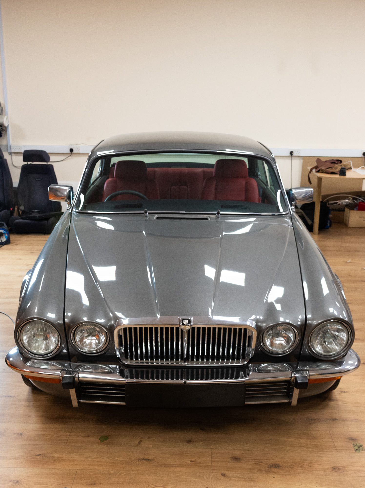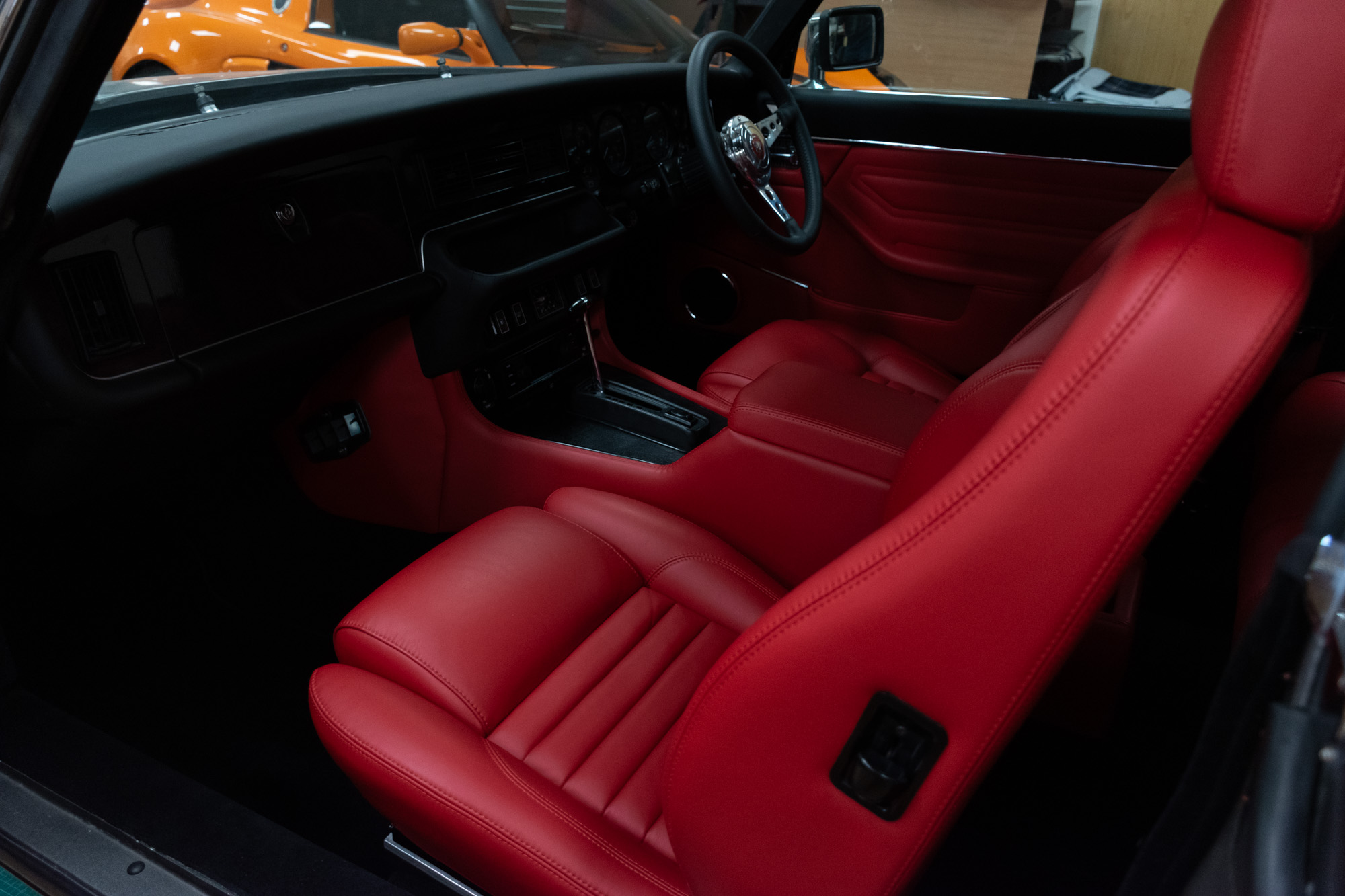 This highly sought-after classic from Jaguar has had a full interior retrim from us in striking red leather.